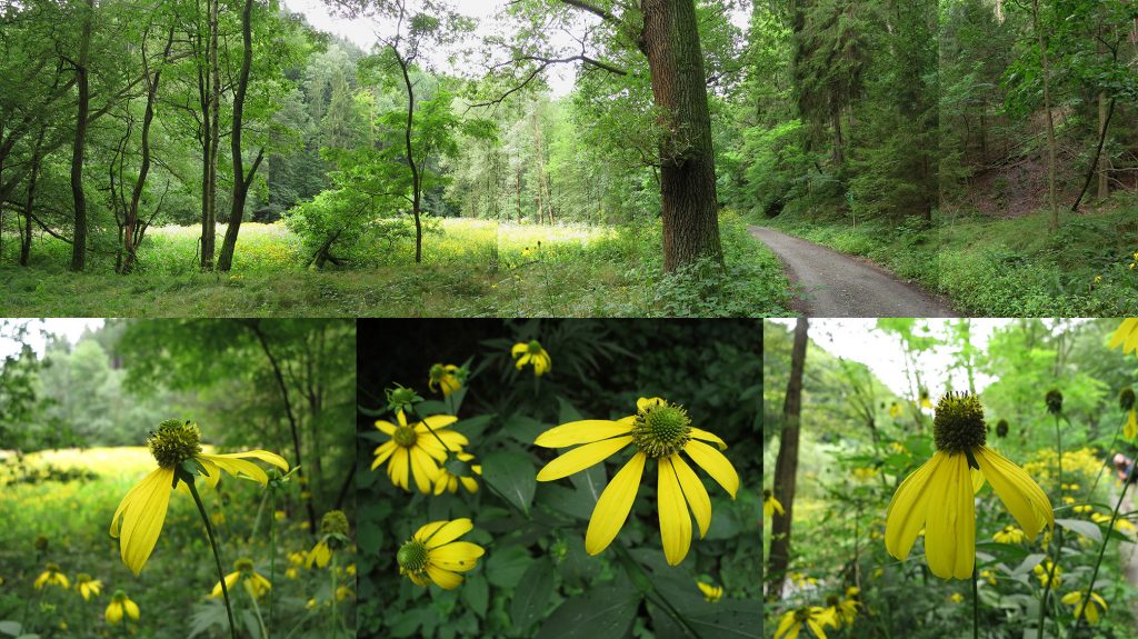 P.S. Na wat puzzelen kom ik niet verder dan dat dit de Echinacea Paradox moet zijn oftewel gele zonnehoed. Die komt in Nederland niet voor in het wild vandaar dat mijn Nederlandse Flora veldgids me hier niet echt kon helpen. Lang leve internet.