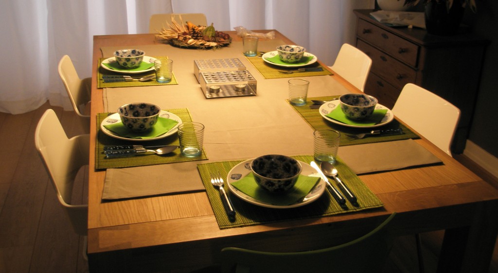 Eten met Cisca Posted on 23 October, 2010 by Cisca Reply Koken is leuk, maar samen lekker eten is nog leuker. Ik heb enorm veel plezier in het dekken van de tafel. Mijn servies, bestek en glazen passen niet heel goed bij elkaar, maar ik vind het juist leuk om er toch een feestelijk geheel van te maken meestal met veel blauw en groen. Deze foto is afgelopen herfst genomen. De sfeervolle herfstschaal heeft mijn moeder gemaakt.