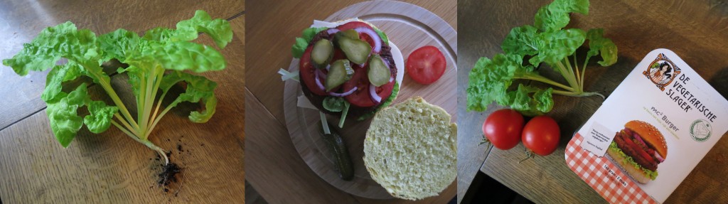Mmm… Ik was nooit zo’n fan van nepvlees. Je eet vegetarisch of je eet niet vegetarisch, maakt niet uit. Maar doe vooral niet te krampachtig. En er zijn zoveel lekkere vegetarische recepten. Nepvlees is vaak helemaal niet nodig. Maar deze vegetarische hamburgers zijn heel er lekker. Dus zet ik mijn principes gewoon opzij : ) Vooral met een eigen geteeld blaadje sla en tomaat.