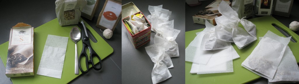 Soms heb je op zondagmiddag zomaar even zin om te fröbelen. Jahaah! Chique woord. Nu wist ik tot vandaag helemaal niet hoe je fröbelen schrijft. Maar daar is Google dus heel geschikt voor. En Google heeft mij vandaag geleerd, dat fröbelen is afgeleid van de naam Friedrich Fröbel, een Duitse opvoedkundige die de kleuterschool heeft uitgevonden en kleuters heilzame knutselwerkjes liet doen. Maar om terug te komen op een koude en miezerige zondagmiddag, ik sloeg dus aan het fröbelen. Ik had nog een doosje theefilters dat ik te voorschijn haalde om eens lekker wat zelfgemaakte theezakjes te maken. Mijn theeblikje had namelijk dringend behoefte aan wat extra variantie. Ik heb het wel eens eerder gedaan, maar toen echt met naald en draad en dus veel omslachtiger. Nu heb ik gewoon de thee in de filters geschept en het geheel met ongebleekte katoendraad dichtgebonden. Lekker snel en werkt perfect. Heerlijk, dat fröbelen!