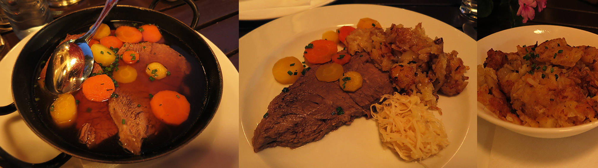 Omdat we misschien niet meer zo snel een stedentripje gaan doen, toch nog een paar dagen Wenen meegepikt. Dit is een lokale specialiteit: Tafelspitz. Het is gekookt rundvlees, geserveerd in bouillon met overheerlijke gebakken aardappelpuree met uien erdoor (echt comfort food) en wat frisse zuurkool. Heel erg lekker. Reinout had een heerlijke Weense schnitzel en die was ook super. Drie avonden in Wenen, drie keer uit eten geweest en gek genoeg helemaal niet duur (en heel lekker)!