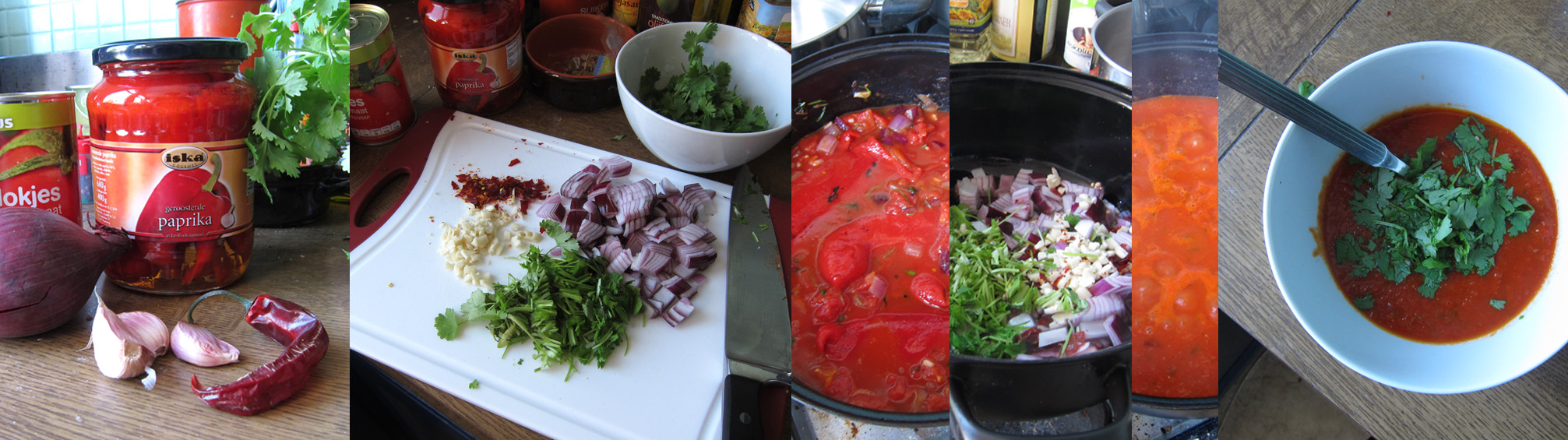 Dit overheerlijke tomatensoepje is een uit de losse pols versie van Jamie’s 15 minutes recept. Zo makkelijk en snel, kan eigenlijk niets mis gaan. Alhoewel… Ik moet wel zeggen dat Jamie vaak een beetje vals speelt met de tijd doordat hij bepaalde voorbereidingsdingetjes niet mee telt. Ik heb de tijd niet geklokt, maar ik deed er wel meer dan 15 minuten over. Wat me aan zijn recept het meeste opviel, waren de geroosterde paprika’s uit een potje. had ik nog nooit gezien. En ik moet zeggen: dat werkt echt. De kans dat ik ook nog zelf paprika’s ga roosteren en ontvellen is meteen met een factor 100 gedaald. Ik vind het geweldig. Maar ik dwaal af. Ik had niet gedacht dat ik zo’n lekker soep zou kunnen maken met voornamelijk ingrediënten uit blik. Nog wel een zelf gedroogd pepertje toegevoegd, maar dat deed achteraf niets met de smaak. Lees verder voor het recept. Continue reading