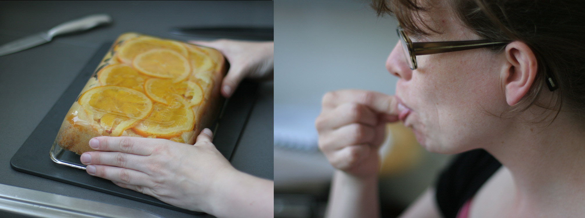 Ik moet zeggen dat ik wisselend succes heb met de tarte tatin. Niet dat je er nu zoveel aan kunt verprutsen, want het is appel en deeg. Niet echt hogere wiskunde. Maar de keren dat ik het op de traditionele manier heb gedaan, was het resultaat niet geweldig. Het smaakte wel oké, maar het oog wil ook wat. En op dat vlak was ik niet tevreden. Ik weet nog steeds niet waar het aan ligt, maar ik vermoed dat het deels komt doordat ik geen echte tarte tatin pan heb. Je kunt ook niet voor alles een pan hebben. Zeker niet in mijn ietwat kleine keuken. Gelukkig kun je dit soort problemen ook gewoon omzeilen, door een leuke variant uit te testen: tarte tatin met sinaasappel. Zoet met een beetje een bite van de schil van de sinaasappel en daaronder gewoon lekkere cake. Zag er echt fantastisch uit en goedgekeurd door maar liefst 8 personen.