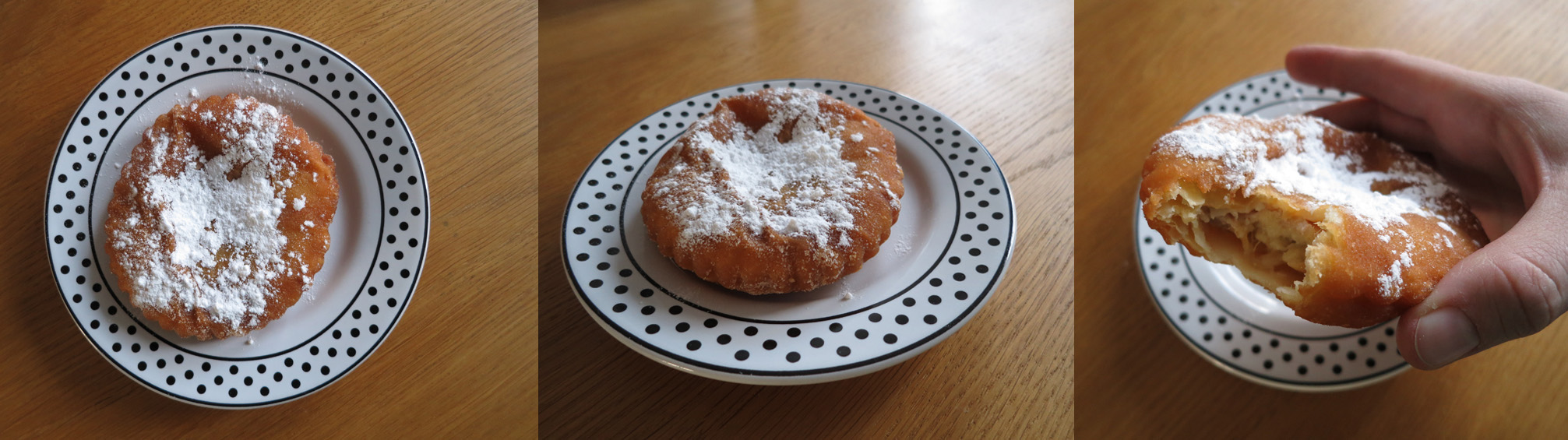 Ik heb nooit lekkerdere oliebollen gegeten dan degene die mijn moeder vroeger maakte. Ik kreeg er laatst één in een grote kookwinkel in Den Haag en die was van buiten te krokant en van binnen niet gaar en bovendien taai. Degene die we bij de kraam hier in de wijk kochten waren beter, maar haalden het ook bij lange na niet in vergelijking met die van mijn moeder. En dus houd ik eigenlijk meer van appelflappen… met lekker veel poedersuiker. Misschien volgend jaar in de nieuwe keuken zelf een poging doen om ze te bakken.