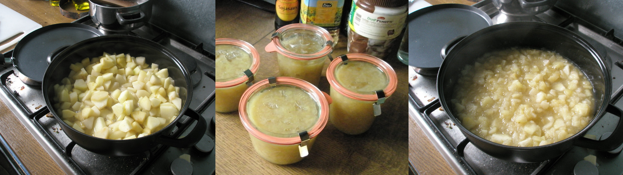 Wat doe je op een regenachtige zaterdagmiddag? Appelmoes maken! Iedereen is er dol op. Ik ken geen mensen die het niet lekker vinden. Traditioneel is lekker, maar je kunt het ook anders maken. Persoonlijk hou ik wel van een beetje avontuurlijk. Dit is mijn appelperenmoes. Half om half appels en peren in stukjes gesneden, beetje water in de pan, beetje suiker (hoeft niet veel te zijn) en een vanillestokje. Laten pruttelen tot alles “moesig” genoeg is. Et voilà! Smikkelen en smullen.