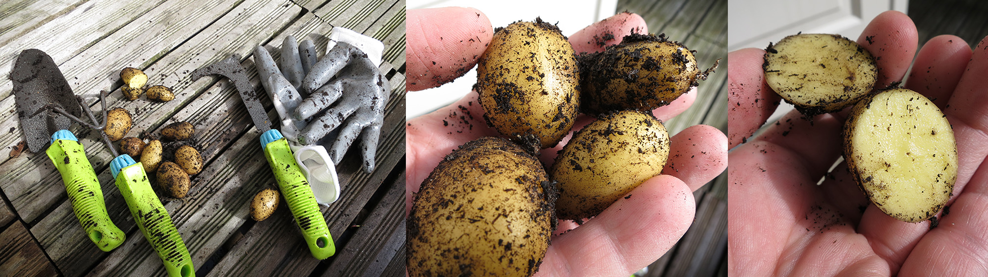 Was ik gisteren op het balkon eens flink bezig om alles weer netjes en klaar te maken voor het nieuwe groeiseizoen, kom ik deze verstekelingen tegen. Diep onder een dode tomatenplant in een pot die sinds vorig jaar oktober een beetje staat weg te kwijnen in een hoekje van het balkon, kwam ik 12 kleine aardappeltjes tegen. Tenminste, ik denk dat het aardappeltjes zijn. Als eerste belde ik mijn vriend, want één optie was dat hij als experiment of grapje een aardappel ergens in de grond had gestopt. Nee, hij was het niet. Wel herinnerde hij zich vogels die zich vorig jaar verdacht gedroegen in de buurt van deze pot. Ooit een vogel een aardappel 15 cm onder de grond zien verstoppen in een pot met een grote tomatenplant erin? Ik ben niet overtuigd. Mijn nieuwe theorie is dat de tomatenplantjes geënt waren op een aardappelplant (tenslotte allebei lid van de nachtschade familie) en dat er daarom na het overlijden van de tomatenplant een tweede leven startte in de aardappelteelt. Ze waren ook echt geënt, dus het zou kunnen. Maar Reinout is niet overtuigd.