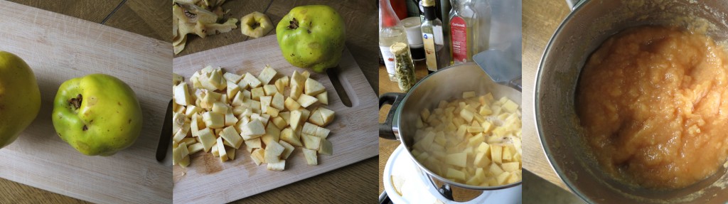 Na al die jammakerij, staat er een voorraad gelei in het kastje waarmee ik makkelijk een jaar zo niet langer doorkom. Met het restant kweeperen toen maar geprobeerd om moes te maken. Jummie!!! Heel lekker. Je moet de kweepeer wel klein snijden, want de vruchten zijn hard. In kleine stukjes worden ze sneller zacht. En het duurt langer dan gewone appelmoes, dus er moet meer water bij. En ook best wel wat suiker. Gewoon steeds blijven proeven totdat het lekker is. Ik heb er ook wat citroensap bij gedaan, zodat de peren niet bruin werden. Echt de moeite van het proberen waard.